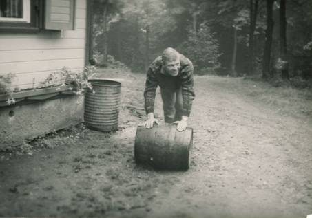Das Bier ist alle. Karli holt ein neues Faß.