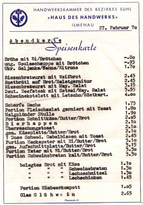 Ab und zu musste aber auch auf feste Nahrung zurückgegriffen werden. Entweder für 60 Pfennige in der Mensa...
